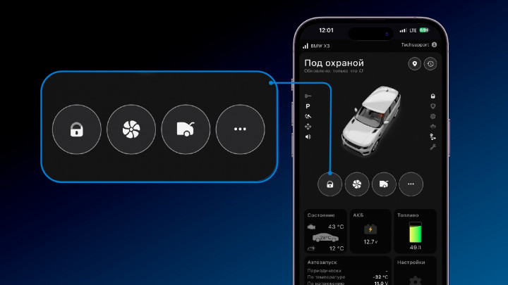 Разработчики приняли во внимание обратную связь пользователей и увеличили размер и контрастность основных кнопок управления на главном экране. После отправки команды на автозапуск появляется дополнительный виджет с информацией об остатке времени работы двигателя, оборотах и температуре. При активном виджете можно легко продлить время работы двигателя на 10 минут по нажатию одной кнопки.