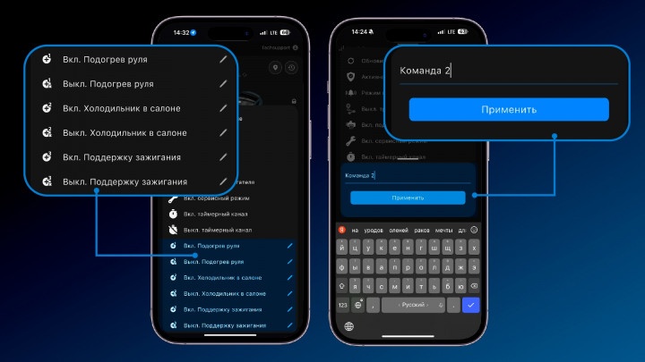 Можно отправлять до трех дополнительных команд при реализации дополнительного функционала, в том числе функцию поддержки зажигания, отредактировав название команды 1/2/3 на требуемое.