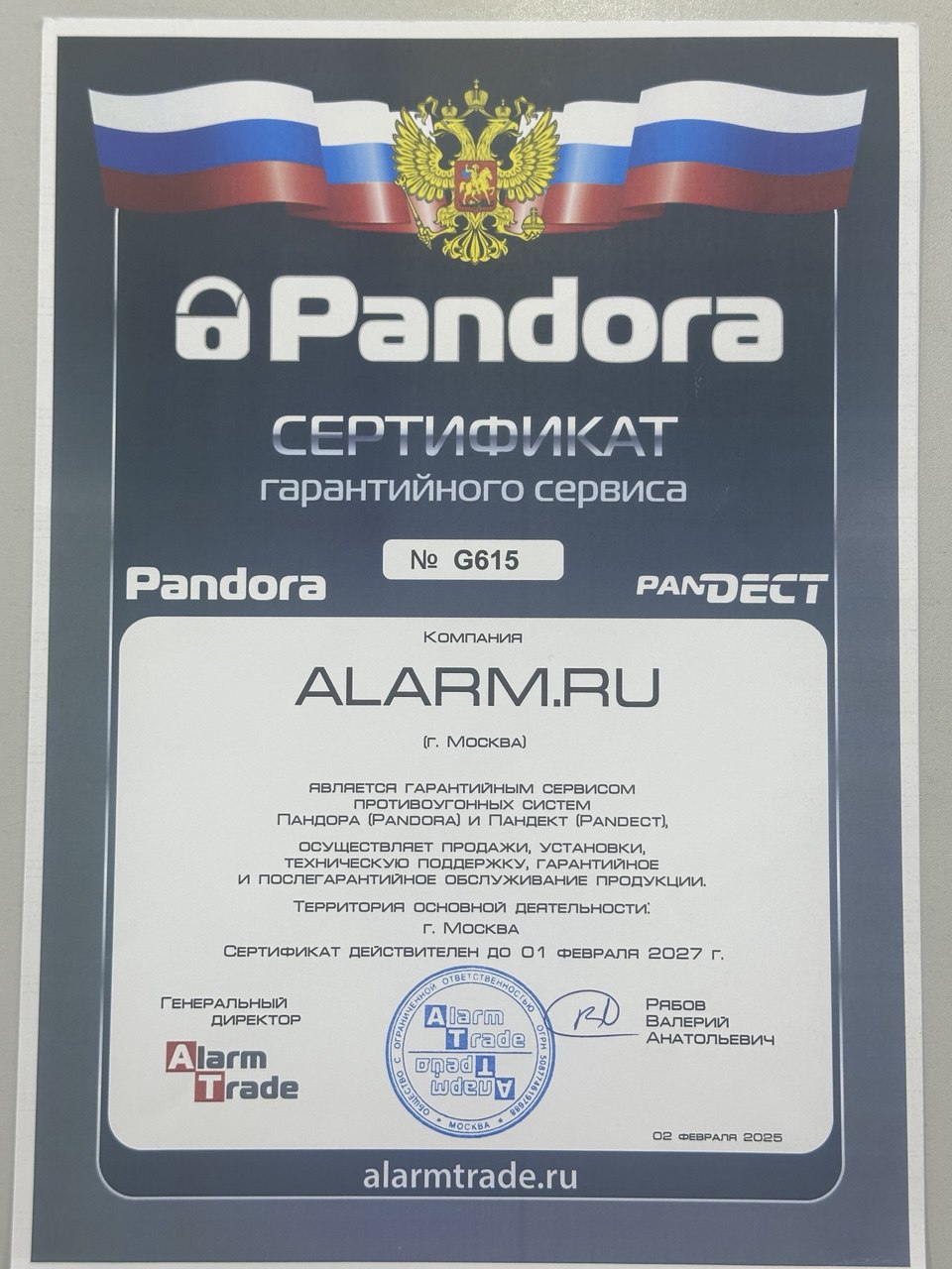 Все представленное на нашем сайте оборудование мы продаем в розницу и оптом, отправляем по России и за рубеж, а также устанавливаем в сети собственных авторизованных технических центров в Оренбурге, Санкт-Петербурге и других городах России. Мы даем гарантию на свои работы 3 года, а также предоставляем все необходимые сертификаты, подтверждающие право работать с оборудованием Pandora и Pandect — никаких проблем с заводской гарантией на автомобиль при обращении к нам у вас не возникнет.